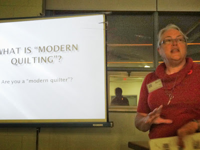 Tuesday was guild night and there was lots of action at the sign-up-for-classes-and-buy-your-half-square-triangle-paper table.